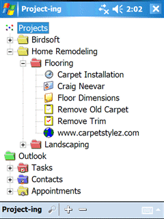Project-ing was designed to run along side your existing Pocket Outlook programs including the built-in Calendar, Tasks, and Contacts or next to the Full Fledged